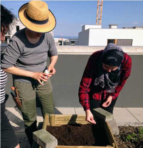 Sur demande les habitants de l’écoquartier sont les bienvenus aux ateliers jardinage.
