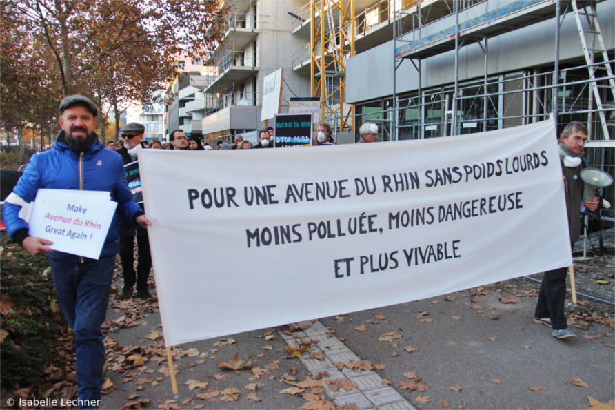 Une mobilisation citoyenne, pour une avenue du Rhin sans poids lourds, moins dangereuse, moins polluée et plus vivable.
